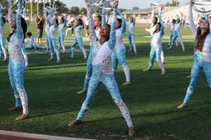 The team practices one afternoon in the football stadium and two afternoons on the band field weekly, along with shorter rehearsals before all football games and events.
